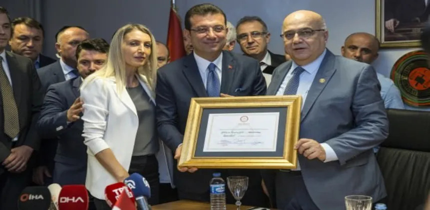 İstanbul Büyükşehir Belediye Başkanlığına seçilen Ekrem İmamoğlu, mazbatasını aldı.